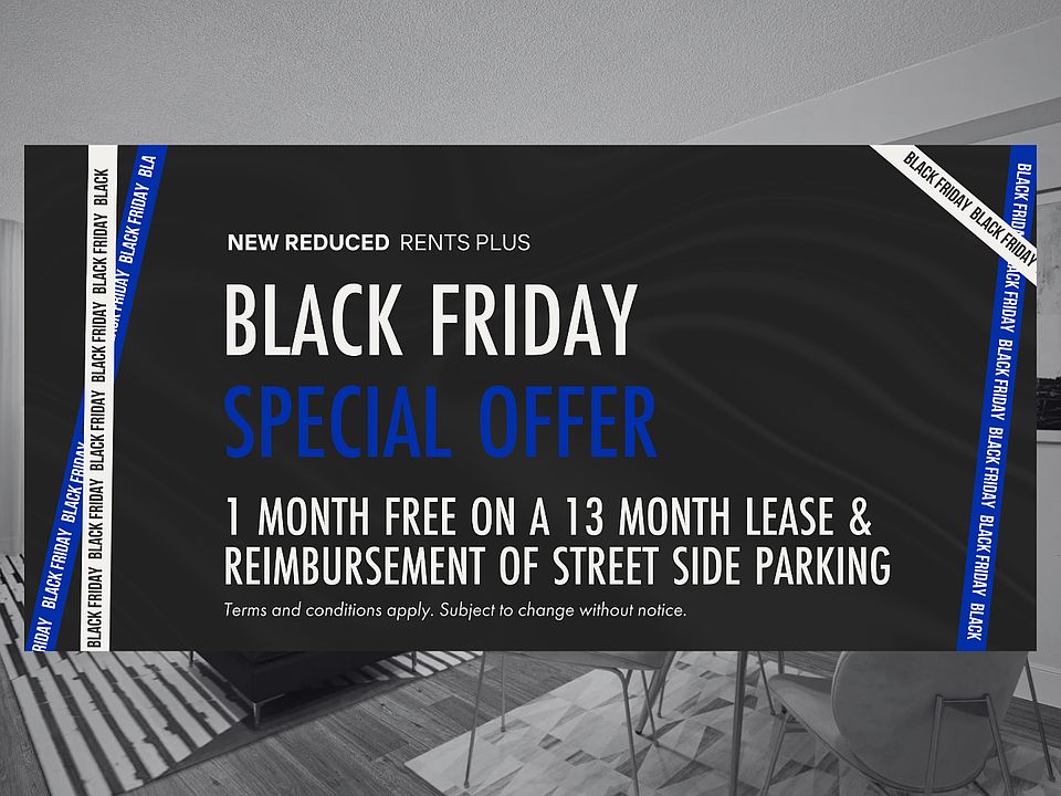 - Special offer! Limited Time Offer: Get 1 Month Free with a 13 Month Lease + Reimbursement for Street Side Parking! - *Offer valid on select suites. Additional terms and conditions may apply.