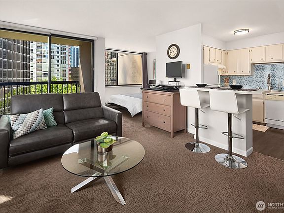 Welcome to urban sophistication in the heart of downtown Seattle. Located close to Amazon HQ and South Lake Union, this modern condo places you near top dining and shopping destinations like Lola, Dahlia Bakery, and Young Flowers. The secure building features a 4th floor rooftop terrace for breathtaking views, a fully equipped fitness center, a welcoming community lounge, ample storage space, and a sparkling community pool. Ideal for those seeking a blend of style, comfort, and prime location.
