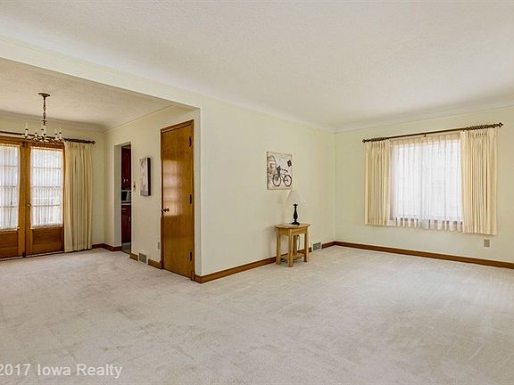 See this solid brick gem, just waiting for you! Open living room and dining room with French Doors to a new deck. 2 bedrooms, hardwood floors under all carpet, hall with linen closet, and bath with enclosed shower & glass block window. Step-saver kitchen w/small pantry; stove, refrigerator & microwave included. The spacious unfinished attic has great potential for the 3rd bedroom, and is just waiting for your personal touch. Lower Level Rec Room, laundry area w/washer and dryer, glass block windows for privacy & light + unfinished space. The New deck overlooks a spacious flat partially fenced yard. which is wonderful for a garden or play area. There is a 1 car garage with opener. Wonderful Des Moines neighborhood; convenient to shops, churches and schools. Don't wait. IMPORTANT: Assessor's page states 1222 sf, with 905 on main living area and 317 in attic finish. However, the attic area is unfinished."