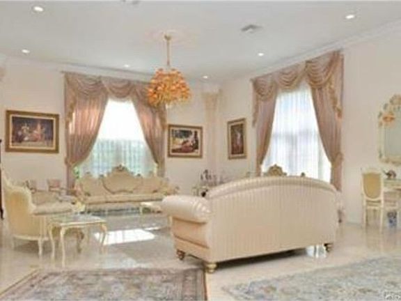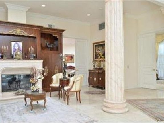 Sensational Majestic Estate, approx 5500 SF located within the prestigious area of Beverly Hills and it's mansions. This mini palace has 3 master ensuites on the main floor, a separate entertaining section (family room) w/ wet bar, FP, sauna & a bedroom plus full bath at the lower level of the residence, connected by all marble wide stairs & gorgeous forged wrought iron railing. Two gates are providing ingress and egress for the main residence. Soaring columns with banisters have boosted the exterior of this mini mansion. Living room and dining area together with 14 ft high ceilings, and marble floors have created a quasi ballroom. Each master suite has its own fireplace & custom cabinetry. The spacious chef's island kitchen, with granite counters, bay windows, skylight, and all the necessary appliances, great for cooking and entertaining. The house is bright and spacious because of the skylights and oversized windows throughout. The house has a sophisticated security alarm system, pool, BBQ, fountain and fruit trees. Available for lease at $16,000/mo. Pictures are portraying the original decoration, because I used my old ones, they may look better with the existing tenant.