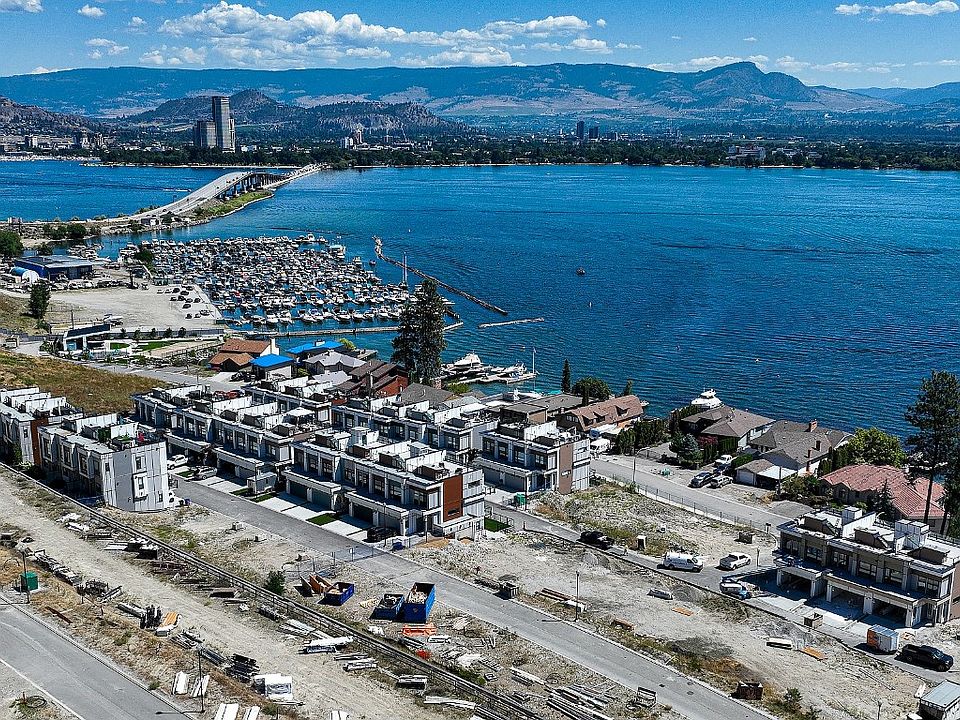 This Shelter Bay Kelowna Townhome is our D Elevator floorplan in our Tide colour scheme. This is an incredible 2,450 square foot home featuring, 4 large bedrooms and 3.5 bathrooms, plus a huge 569 square foot roof top terrace and a spectacular view of Okanagan Lake. This home comes with a residential elevator that services all floors including your rooftop patio, side-by-side double car garage, open concept living plan, luxuriously finished with exposed wood beams, high-end appliances and fixtures. Available now! . You’ll love it here!