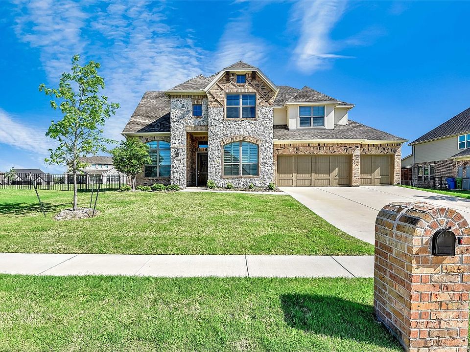 Stunning home perfectly situated on half acre cul de sac lot in The Bridges in Gunter, Tx, a Fred Couples golf course community. Expansive lower level floor plan featuring open kitchen, living, dining room. Floor to ceiling brick fireplace, office, kitchen with oversized island, gas cooktop butlers pantry, walk in pantry, stainless appliances, central vac system. Tons of natural light with picture view windows. Privacy is at the push of a button with electric shades. Master bedroom & en-suite bath w dual sinks, vanity, walk-in shower, jetted tub, walk in closet that opens to the utility room. Secondary bed & bath downstairs. 2 beds & 1 bath upstairs. Second living room & media room upstairs. All bedrooms complete with premium berber carpet & top grade padding! Energy efficient mechanical components including upper & lower level HVAC units, tankless water heater, & upgraded irrigation for the entire lawn! Beautifully maintained backyard & extended covered patio! Oversized 3 car garage!