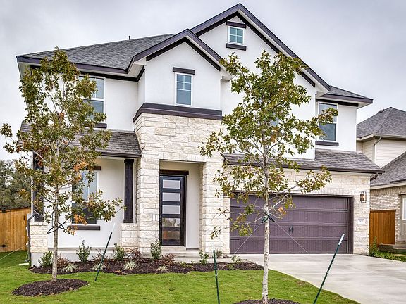 "Grant" home with contemporary finishes, 8' interior doors. Home features include: private study, walk-in pantry, extended covered patio, open chef kitchen with built-in stainless appliances and large island. Grand master suite with relaxing freestanding tub, spacious walk-in shower and door to the utility from master closet. Upstairs features 4 generously sized secondary bedrooms all with walk-in closets, 2 additional baths plus a gameroom. Home also includes full sod and irrigation, gas stub on patio and is pre-plumb for water softener. Zoned to Georgetown ISD