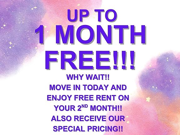 Why Wait!! Move in today and enjoy free rent on your 2nd Month!! Also receive our special pricing!Expires October 17, 2025