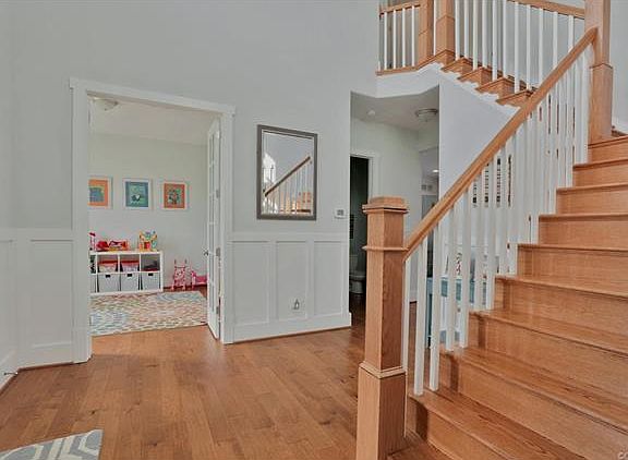 Custom, nearly new, stick built home by Falcone Custom Homes. 10 ft ceilings with 8 ft grand doorways on first floor make the rooms feel spacious and flooded with natural sunlight. Low maintenance James Hardie siding, fantastic full covered front porch, stamped concrete drive and fully fenced rear yard. Inside boasts wide plank wood flooring throughout (with exception of bedrooms), solid oak grand staircase in foyer, transom and Craftsman trim details throughout. 1st floor study with French doors, formal dining room with lovely mill work, sunny kitchen with farm sink, soft grey oversized island with marble counter, timeless black granite/white cabinetry/white subway tile and recessed lighting. Eat in area transom breaks up open space to family room that has coffered ceiling, gas fireplace. Upstairs has 5th bedroom/game/bonus room with walk up attic storage and recessed lighting. Overized bedrooms with Jack and Jill full bath, additional bed and full bath. Dreamy master suite with clg fan, his/hers walk in closets, spa like bath. "Extras" like seperate water meter for irrigation, fully irrigated in rear as well, dual fuel gas/electric HVAC on first level and electric for 2nd zone.