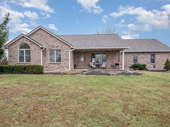 Welcome to your peaceful oasis. This meticulously cared-for three-bedroom, two-bathroom one story living ranch home offers comfortable living space with thoughtful updates throughout. Nestled on a private 2.34-acre lot, this property provides the perfect blend of tranquility and convenience. Vaulted ceilings in the living room, kitchen, and two bedrooms create an open and airy feel. The eat-in kitchen features newer appliances, along with updated countertops and a stylish backsplash. Relax and enjoy sunsets on the front porch or the beautifully landscaped rear patio. The oversized two-car garage offers ample storage and an extended driveway provides plenty of parking. Major systems are in excellent condition, with a roof that will be two years old in August, newer propane heat pump and AC, and a five-year-old septic system that will be pumped prior to sale. A large, unfinished basement offers plenty of storage and additonal possibilities. With 2.34 acres of peaceful surroundings, modern comforts, and a history of meticulous care, this home is truly move-in ready. Schedule your showing today!