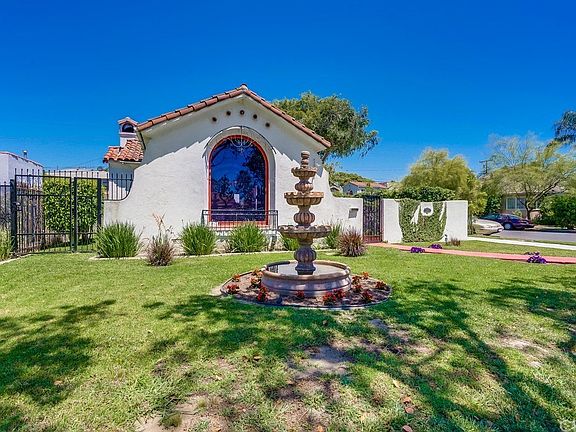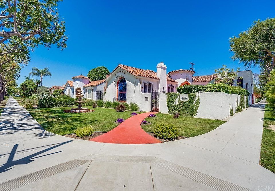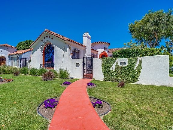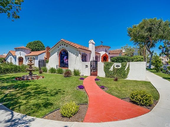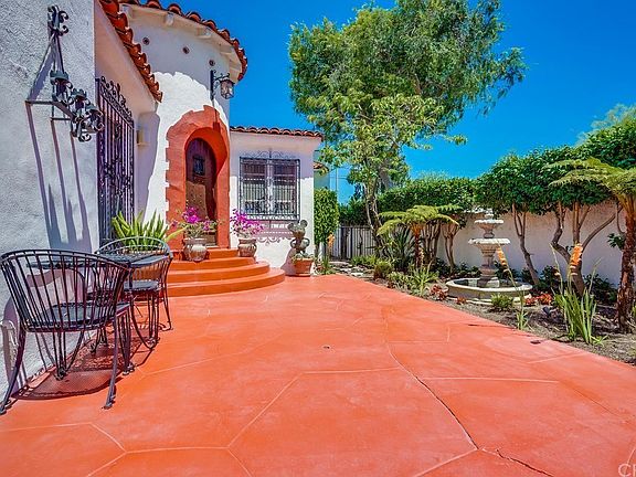 A stunning 1930's Classic Spanish Home, often referred to as an Art Deco Spanish, with 4 bedroom, 3 bathrooms, 2,832 sqft and a separate detached apartment. Common to the Architectural detail of the time, this home features a large Courtyard with Parapet entry, Garden, and water features. This Period style accounts for its large scaled rooms, the use of natural light, and greater attention to detail, such as, Ornate Wrought Iron work, Large Vertical Picture Windows, Carved wood details, Sconces, Chandeliers, and Textured Patterns in the Plaster. The Living room features a high barreled ceiling, hardwood floors, and fireplace with Bacheldor Inspired tile. The large Formal Dining room and Living room overlook the courtyard. Spacious kitchen with original cabinetry, tile flooring & counter tops, breakfast nook and indoor laundry room. Special, and hard to find, is the Original Bathroom, with original tile flooring, pedestal sink, shower and tiled bath, built in dressing table and medicine cabinet. Large Master Bedroom with 3/4 bath and fireplace. The 2nd bedroom is currently being used as a Den with fireplace. The 4th bedroom and 3rd bath are being used as separate rental unit, in addition the is another rental apartment over the 2 Car Garage.
