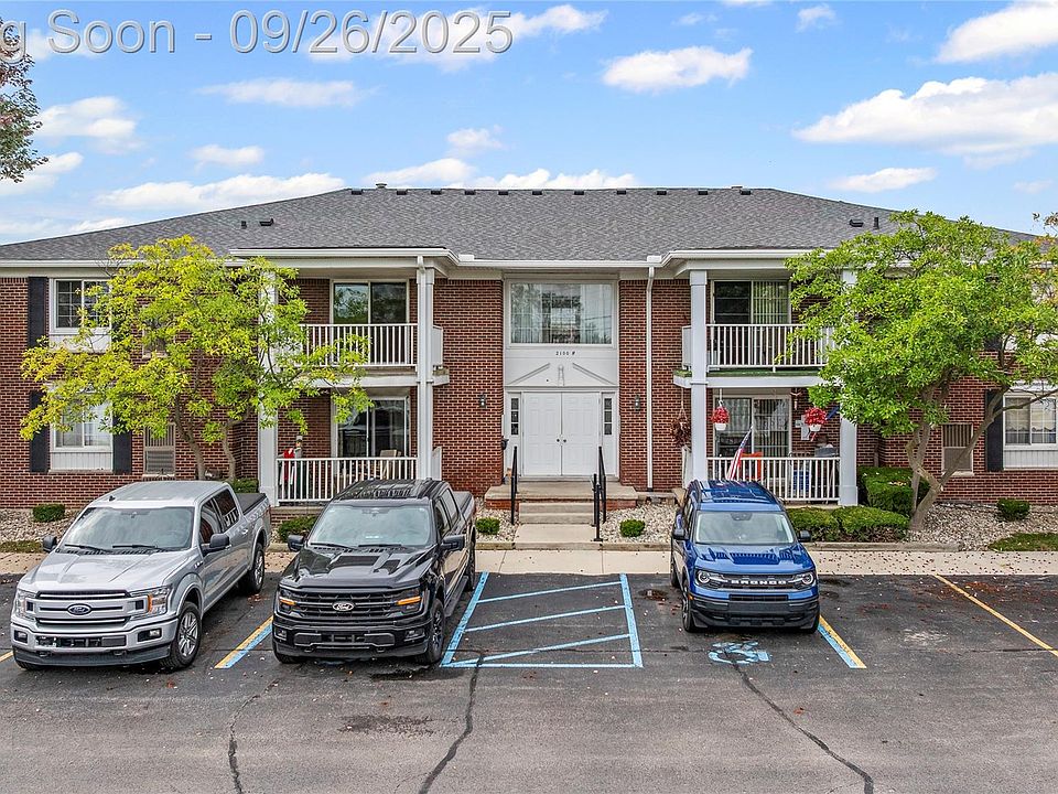 Welcome to this two bedroom and two bath spacious second floor condo. This unit has been freshly painted (September 2025) with new carpet (September 2025). Large living room has a doorwall that leads to a private balcony to enjoy the fresh air. Galley style kitchen includes appliances. Primary bedroom has a private bath. Full size washer and dryer are tucked away in a hallway closet for “in unit” convenience. Refrigerator, stove, microwave, dishwasher, washer, and dryer are included. When the temperature is too hot, cool off in the community pool. Nothing left for you to do except move in! Schedule your appointment today. This will not last long! Possession at closing. Certificate of occupancy provide by seller.