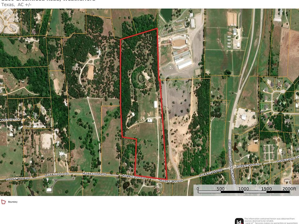 A rare opportunity to purchase approx. 10-acres carved from a larger approx. 49.9-acre assemblage at 2100 Greenwood Rd, Weatherford, TX 76088, known locally as the historic Marvin Savage Farm. This property blends the best of Parker County living with rolling terrain, scattered hardwoods, and open pastureland, all with a gray pipe fence and gated entry at the top of the hill. The approx. 10-acre tract will need to be surveyed from three contiguous parcels owned by the seller to create a versatile homesite with road frontage and multiple potential build locations. Whether your vision is a custom home, barndominium, or equestrian retreat, this tract offers privacy, flexibility, and long-term appeal. The buyer will also receive FIRST OF REFUSAL on the balance of the acreage owned by seller. This arrangement allows you to secure your ideal homesite now while preserving the option to expand later for family, livestock, equestrian facilities, or investment purposes. Location is superb. The property sits atop Greenwood Road, just off the new Ric Williamson Memorial Highway with quick access to I-20, US-180, FM-1187, and Hwy 51. Downtown Weatherford, Aledo and Walsh are minutes away, and Fort Worth is an easy commute. Despite this convenience, the land maintains the quiet character of Parker County countryside. The property is in unincorporated Parker County with no HOA, making it ideal for a wide range of uses. Rural electric is available in the area; water wells and septic systems are common for this corridor. Agricultural valuation may be possible depending on use. This is more than a homesite—it is a chance to own part of a locally recognized farm with history and legacy while securing the option to expand your ownership in the future. Opportunities of this size, quality, and location are increasingly rare in Parker County. Property will need to be surveyed by buyer.