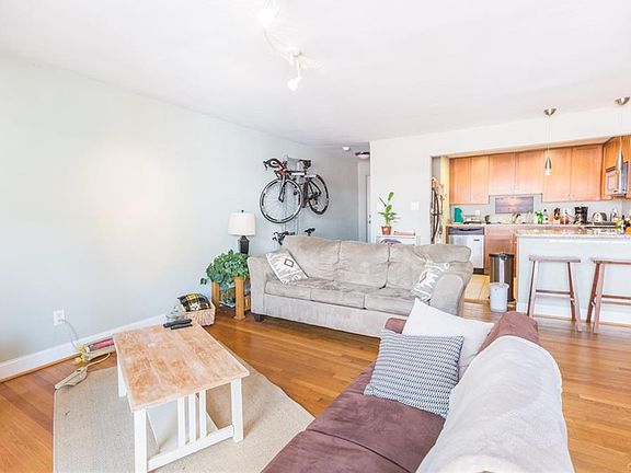 BRIGHT TOP FLOOR CORNER UNIT at Fan Square...a unique condo community with 1960s flair in a prime central Fan location! Notable features for this price point include: OFF STREET PARKING pass for 1 car in the attached lot, YOUR OWN UNSHARED BALCONY, an OPEN LAYOUT, IN UNIT LAUNDRY, and BASEMENT STORAGE UNIT. Walk to VCU, VMFA, Byrd Park, Strawberry St, Whole Foods, numerous restaurants, the list goes on and on! Enter from your own exterior entrance (no communal enclosed hallways or lobby) into this third floor corner unit to find an open kitchen/dining/living area with large glass sliding door leading to a wonderful outdoor balcony. Kitchen features granite, stainless steel appliances (including dishwasher), and bar with room for two stools overlooking the open living/dining area. Wood floors throughout with tile in the kitchen and full bath (updated vanity, shower/tub combo). Bright and spacious bedrooms each with a closet overlook Grove Ave. Updated light fixtures throughout! Don't miss this opportunity to purchase a top floor corner unit in this unique Fan community! *Fan Square is not an elevator building.*