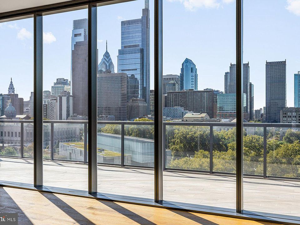 Introducing Residence 9E, one of 2100 Hamilton's most spectacular new units, complete with its own 425-square-foot balcony! Offering almost 3,300 square feet awash in natural light, this all-new condominium is right below the penthouse, giving it panoramic city views from inside and out. Its open floor plan offers roomy living/dining with floor-to-ceiling doors opening to the 47-foot-long balcony, creating exceptional indoor-outdoor living. Its state-of-the-art designer kitchen and baths from Joanne Hudson offers every luxury. The kitchen is outfitted with Sub-Zero/Wolf/Cove appliances, plus a full-size wine cooler and separate pantry. There are three bedrooms, 3.5 baths, and a potential fourth bedroom in a den that can be closed off with pocket doors. A two-sided gas fireplace serves the den and living room; a second gas fireplace is in the primary bedroom suite. The main suite bath offers radiant-heated floor and oversized glass-walled shower with glass that frosts for privacy at the touch of a button. These sumptuous private quarters also offer a walk-in closet outfitted in organizers and built ins. There is a laundry room with full-size washer and dryer. All windows are pre-wired to accommodate power window treatments (being currently installed). 2100 Hamilton is a new, exclusive, luxury condominium building with only 27 units in the heart of the Art Museum Area designed to offer the ultimate in privacy. With the Rodin and Barnes Museums as its neighbors, spectacular views of the city skyline from every unit and a wealth of private greenspace at its base, the 10-story 2100 Hamilton is ideal for those seeking the finest in luxury living in this park-adjacent city neighborhood. Pull into the garage drop-off station where a valet is available to assist you. The elevator, which uses facial-recognition technology, will take you directly into your residence, eliminating shared hallways. 2100 Hamilton has the city's largest residential garden and event plaza, designed by renowned landscape architect Sikora Wells Appel, with water and fire features and multiple seating areas to accommodate a group or a private spot just for you. Additional building amenities include an indoor infinity pool, guest suite, boardroom, top-grade fitness center, catering kitchen and amenity lounge, town car and driver, and 24-hour concierge.