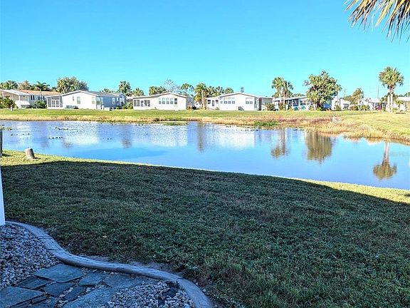#279 Muskoka Water View home located in a Gated Golf Course Amenity Rich Community! If you are looking for a quality home, this top of the line 2 bed 2 bath INDIES almost 1600 sq ft-built home as well the additional 250 Sq Ft Enclosed Lanai features 2 x 6 walls, R20 insulation in walls, R40 in Floor, and ceilings. The windows are double-glazed with accordion hurricane shutters for efficiency and safety. You will enjoy this lovely entertaining home with natural light and bright living room which flows out to the enclosed 250 sq ft lanai overlooking water views. The living room is perfect for entertaining w/ wet bar, bar fridge and plenty of counter space and cabinets for additional storage. The front room is currently used as a large dining area that could be a family room or office/den. Home has beautiful hardwood cherry flooring throughout w/3/4 plywood and bamboo in Family Room and well-appointed drywall and crown molding to add to this custom home. The enclosed back lanai that spans the entire back of the home with oversized windows overlooks the pond to enjoy fantastic sunsets. This well constructed lanai features 2 x 10 -12” centers and double ¾” pretreated plywood. The lanai has a D/C motor fan providing Energy-Efficient Cooling. The attention to detail and upgraded quality featured in this home makes this a standout home. The large shed has 2 x 6 framing w/pretreated wood and 5/8" pretreated plywood walls. The shed has wide doors to accommodate a golf cart and has plenty of shelving. The private screened in Carport area is supported with pretreated 6” x 6” 2”x 8” and all joints and connectors are hurricane code. Enjoy get togethers in this lovely private screened area complete with firepit and plenty of seating. This screened area is perfect for your small car to be housed in the summer months if you are a snowbird. Home is sold Furnished, Art/Pottery and personal items do not convey. You will not want to miss this Fantastic 55+ Resident-Owned 18 Hole Executive Gated Golf Course Amenity-Rich Community has lighted Tennis Courts, Pickleball Courts, Fitness Room, Heated Swimming Pools, Clubhouses, Fishing Lakes, Bocce Ball, Lawn Bowling, Mini-Putt, Horseshoes, Many Special Clubs, Arts & Crafts, Cards, Bingo, Woodworking Shop, Ceramics and Computer Club. Enjoy the On-Site Restaurant/Bar for Dinners, Music & Entertainment! Maple Leaf Golf & Country Club is a Resident Owned community. Price Includes Membership Certificate (stock certificate).