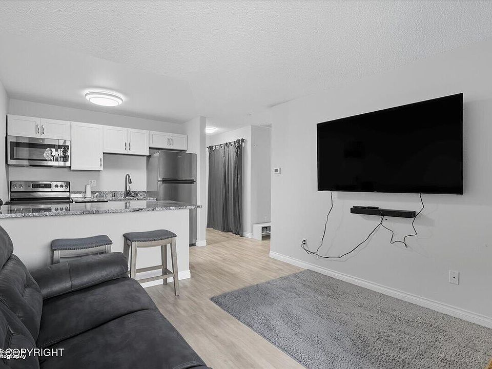 This top-floor 1-bed, 1-bath, South ANC condo offers 480 sq. ft. of efficient, comfortable living space and was tastefully remodeled in 2018. Featuring an in-unit washer and dryer, cozy fireplace, deck, and a smart layout that maximizes every inch, this home provides easy, low-maintenance living. Conveniently located within walking distance to Fred Meyer, schools, parks, and popular trail.