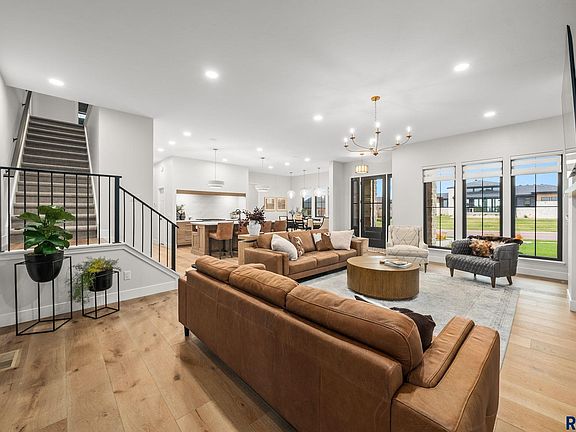 The chef-inspired kitchen is both stylish and functional, featuring a mix of white and stained cabinetry, premium Café appliances, a Cambria quartz island, and a generous walk-in pantry. The primary suite serves as a private retreat with dual vanities, a soaking tub, walk-in tile shower, and a custom closet complete with a center island. Upstairs, a versatile family room offers a wet bar, dining space, and room for recreation or hobbies. Three additional bedrooms and two full bathrooms — including a Jack-and-Jill suite — complete the upper level. A thoughtful back entry provides a convenient drop zone, laundry room with sink, and half bath. The finished 3+ stall garage is equipped with epoxy floors, a floor drain, hot/cold water, a gas heater, and direct backyard access. Outdoor living is elevated with a built-in firepit, basketball area, and professional landscaping on a beautifully maintained ¾+ acre lot. The three-season room, featuring dual sliders, a wood ceiling, and a gas fireplace, provides the perfect space for year-round entertaining. Additional features include a whole-home sound system and zoned heating and cooling, ensuring comfort and convenience throughout every season.