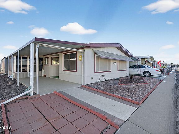 This well-maintained 1982 double-wide manufactured home offers approximately 1,600 sq. ft. of living space with 3 bedrooms and 2 bathrooms. The home is offered fully furnished and includes a storage shed that conveys with the sale. Recent updates include a new roof in 2022, new flooring in 2024, and refreshed woodwork in the primary bathroom in 2025. It also features an antenna providing approximately 90 free TV channels for added convenience. Spacious, clean, and move-in ready. Casa Verde Estates A is an active adult 55+ community offering a clubhouse, swimming pool, spa, billiards, shuffleboard courts, library, organized activities, and well-maintained paved streets. The peaceful setting and strong amenities make this property ideal for full-time residents, seasonal or winter guests. Located midway between Phoenix and Tucson, Casa Grande provides convenient access to major shopping, medical services, dining, golf, parks, and year-round recreation. Approximately 30% of Casa Grande's population is age 55 or older, contributing to a senior-friendly environment supported by local hospitals, emergency rooms, specialists, and multiple active-adult and assisted-living options.