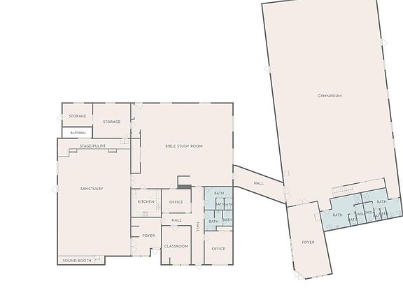 Large sanctuaryHuge gymMeeting spaceMultiple bathroom facilities