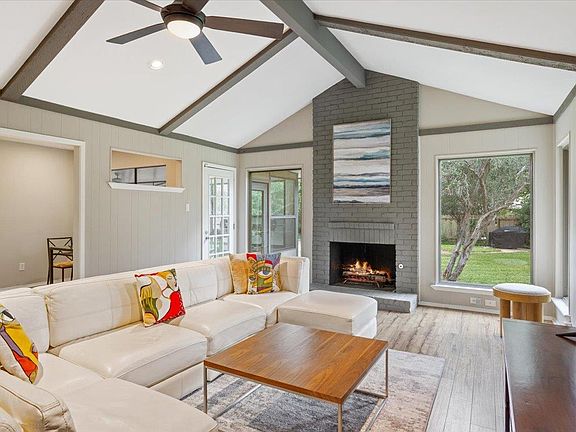 It sets apart! This is a house with timeless character and a neighborhood that you’ll cherish living in. You can see why this home was the model home for the builder, this stunning design maximizes every square foot. Featuring custom details, warm neutral colors and an abundance of natural light throughout create a bright and vibrant atmosphere. Upon entering, discover luxury plank flooring flowing seamlessly through the home, step to your left to the dining room and kitchen, or straight to the living room featuring exposed beams & a gorgeous center fireplace with view of the large open backyard. Step outside to discover your own private retreat, the mature trees create a serene ambiance that invites you to relaxation or outdoor entertainment. Sunroom with separate climate control unit is currently used as an exercise room, but this space could also be a cozy reading nook. Back inside, you will find the three generously sized secondary bedrooms with ample closet space on the opposite side of the main bedroom. The spacious primary bedroom has a barn door to the bathroom. Where you'll find a walk-in shower and two large closets. The updated kitchen shows a timeless subway tile backsplash, quartz countertops, and high-end stainless-steel appliances, including a modern range hood. Enjoy peace of mind with recently replaced shingles, water heater, electric panel and Anderson windows. HVAC system including ducts and insulation were done in 2021. With its prime location and comprehensive updates, this property stands out as a rare find!