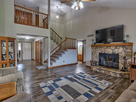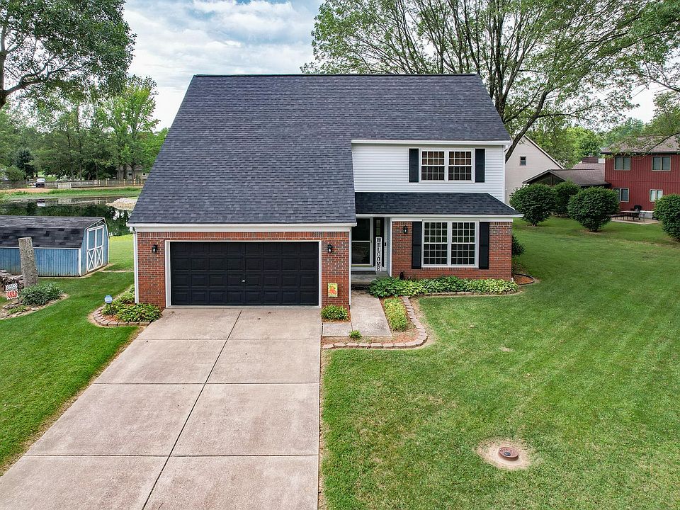 Welcome to this spacious home nestled in a private setting at the end of a cul-de-sac on Evansville's northeast side. This well maintained residence offers the perfect blend of tranquility and convenience, just a short drive from all amenities. As you approach this property, you'll immediately notice its charming curb appeal. A large driveway leads to an attached two-car garage, well maintained landscaping, and a timeless vinyl and brick exterior. Step inside this inviting home, and you'll be greeted by tall, vaulted ceilings that create an air of spaciousness, seamlessly connecting the living room and dining room into an open, airy, and light-filled space. The recently updated vinyl flooring adds a touch of modernity, while large windows invite an abundance of natural light. A cozy wood-burning fireplace provides the perfect focal point, accompanied by a ceiling fan for added comfort. The spacious eat-in kitchen features granite countertops, tile backsplash, stainless steel appliances, a convenient breakfast bar, and ample cabinet storage. Whether you're preparing daily meals or hosting gatherings, this kitchen has everything you need. On the main floor, you'll discover a versatile bedroom that could also be transformed into a home office, offering flexibility to suit your needs. Completing the main level is a convenient half bathroom and a practical laundry room, ensuring ease and efficiency in your daily routines. Venture upstairs, and you'll find the spacious primary bedroom, boasting plush carpeting, a ceiling fan, double closets, and an en-suite bathroom with a twin sink vanity. The two additional bedrooms on this level are equally inviting, featuring comfortable carpeting, ceiling fans, and generous double closets. One of these bedrooms offers a unique bonus with walk-in attic access, providing additional storage space. This home is tailor-made for indoor and outdoor entertainment. From the dining room, step out onto the open back deck, a perfect spot for enjoying meals and gatherings. The deck overlooks a lake, ideal for catch-and-release fishing, while a tranquil walking path wraps the lake, perfect for an evening stroll with a view. The expansive backyard also boasts a hot tub and a storage shed, providing the perfect place to unwind after a long day. This remarkable property offers the peace and seclusion you desire, all within reach of the of the city's amenities. Don't miss the opportunity to make this well-maintained home your own!