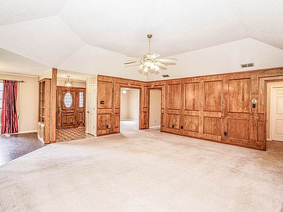 Rare find in Pine Tree, house on 5 acres of land! House features large living room with built-in and stone fireplace. Large kitchen with center island and massive pantry. Split bedrooms including guest room with attached bath. 3 bedrooms plus flex room AND office with custom built in's. Tons of storage throughout home. Outside offers fenced back yard, covered patio, 40 x 50 metal work shop- with 3 overhead doors and several other out buildings.Circle drive with park like area with decking.Creek on property.