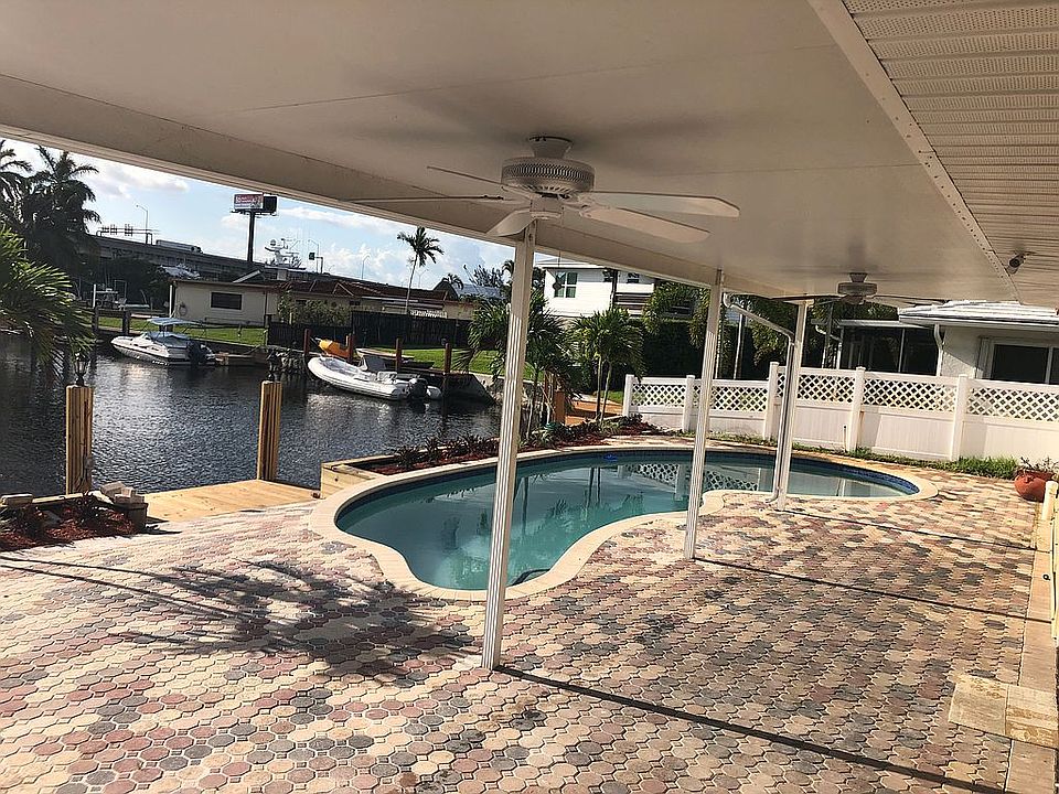 4/2 1960 sf updated house w/pool on 65 feet of ocean access waterfront. Located in Flamingo Park three lots off the New River w/ only a 65 foot fixed bridge. Remodeled kitchen features granite counters, new stainless steel appliances, bar seating for 7, and spectacular waterfront views. Master suite features dual walk in closets and 12x6 master bath w/ over sized shower. Two car pavered parking plus 70 feet of parking for boat trailer. Flamingo Park is just west of 95 off Davie Boulevard and is in close proximity to the airport, 595, the turnpike and the beach. 3% commission.