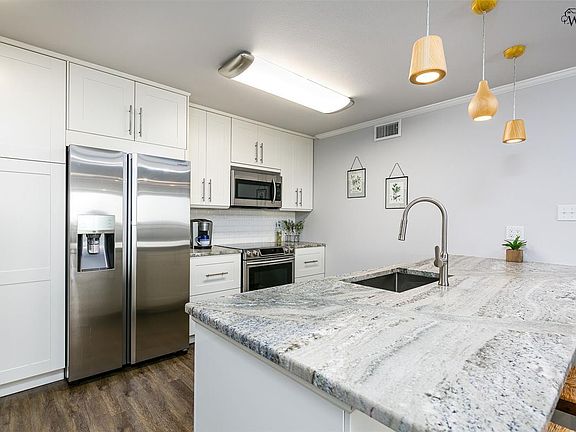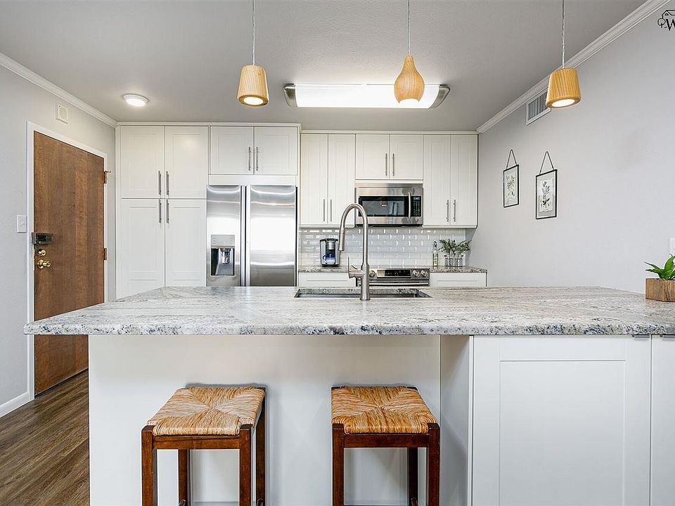 This stunning two bedroom, two bath condo is a must see! Extensively renovated in 2016 with new flooring, HVAC, contemporary lighting, cabinets, granite counter tops, appliance package. Bathrooms feature glass showers & stone tile. Large walk-in closet in master. New windows 2019. Access to private balcony from living area & master bedroom Two excellent parking spaces in gated garage. 24 hour courtesy clerk in lobby. Workout room, pool, and social room included. Low maintenance lifestyle!