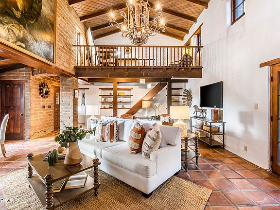 Experience rustic beauty and craftsmanship in a serene and picturesque setting. Nestled on a private 8-acre lot, this stunning adobe home boasts charming architecture and well-preserved character. The main 4-bedroom, 2 ½ bathroom residence exudes warmth and elegance and offers sweeping pastoral views, fostering a feeling of connection to the land that surrounds the property. A more recently built stand-alone 1,000 square foot guest house has an elegantly designed interior encompassing a one-bedroom suite and full bathroom, living room, spacious chef's kitchen, dining area and convenient laundry room. Step outside and indulge in the magnificent pool, outdoor shower or tennis court, all with stunning mountain views.
