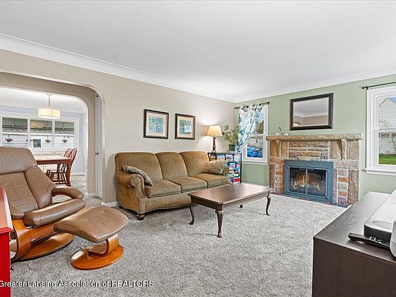 Welcome to 2100 Sunnyside! Located in the highly desirable Scott Woods neighborhood - this 3 bedroom, 1 bath home is ready for a new owner! Featuring a complete tear off and new roof in 2021, new gutters (2021), new carpet (2022), new kitchen flooring (2020), newer water heater (2017) and vinyl double hung windows throughout! Upon entry, you're greeted with lots of natural light and a spacious living room highlighted by a stone tile fireplace. The kitchen features newer stainless-steel appliances (a gas range for those who love to test what you learn on Food Network!) and a portable island that will stay! Two nicely sized first floor bedrooms and full bath round off the first floor. The large primary bedroom is located on the upper level and boasts over 300 sq ft! Multiple closets too! The lower level offers the opportunity for additional finished space and tons of storage! Additional features include central air, a detached 1 car garage with a bonus parking pad, formal dining area, crown molding and walking distance to the entrance of Lansing's River Trail! New Disc Golf Course across the street too! This move-in ready home is located less than 10 minutes from MSU, highways, downtown Lansing, McLaren, Fenner Nature Center, the new Mt. Hope Elementary and shopping! Call today for your private showing!