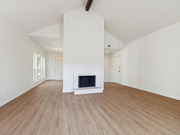 Wood burning fireplaceNew flooringFully fenced communityQuartz kitchen countertopWalk-in storage closetAssigned covered parking