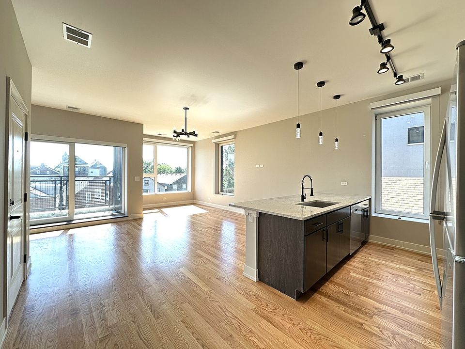 Unreal three bedroom, three bathroom in Pilsen new construction building features modern kitchen with quartz countertops, stainless steel appliances, dishwasher, microwave, breakfast bar, large combination living and dining rooms, balcony, hardwood floors, spacious bedrooms, great closet space, modern bathrooms, in unit laundry, and pets are welcome! Close to Green Line and Pink Line stops!