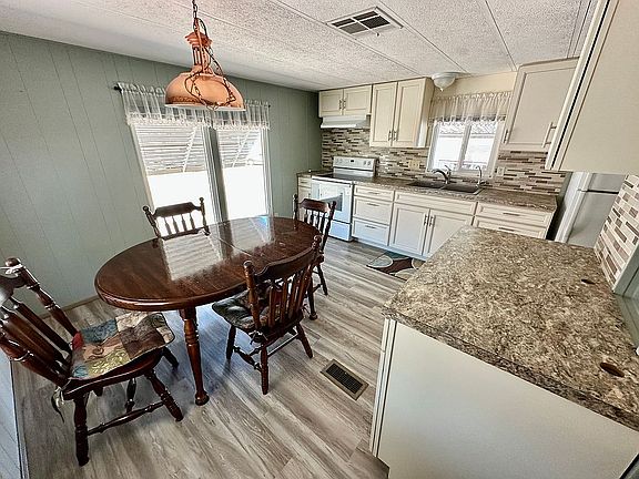 All Electric (no gas bill), in home washer and dryer-NOT OUTSIDE in a shed! All plumbing lines upgraded to Plex (2014), new flooring, remolded kitchen and bathroom, metal roof pour over protector, exterior paint and trim (2024).