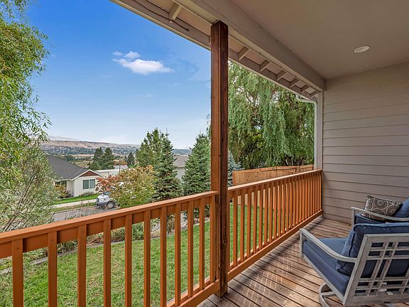 Stunning one level home with gorgeous valley views! This home is situated on a quiet private road located close to trails and town. You'll enjoy the open floor plan with high vaulted ceilings. Kitchen is made for a chef with gas cooktop, granite counters, center island with seating, huge pantry and stainless appliances. Kitchen is open to the large living room with cozy fireplace. Formal dining has amazing views. Bedrooms are located away from the entertaining space. Master suite is spacious with walk-in closet and has a well appointed master bath with soaking tub, double sinks & walk-in shower. Outside you'll enjoy the wrap around deck with views, newly fenced backyard with new sod and irrigation system. This home also has a two car garage. Make your showing appointment today!