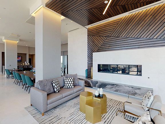 - Exterior features: Bicycle storage, Courtyard, Designer faucet hardware, EV Charging Station, Expansive closets, Expansive kitchens, Floor to ceiling windows, Full ceramic-tile backsplash, Package Receiving, Pendant lighting, Quartz countertops, Remote-controlled smart shades*, Slide-in stainless-steel gas ranges, Smart thermostats, Spa-Inspired bathrooms, TV Lounge, Two designer inspired color scheme, Undermount sinks