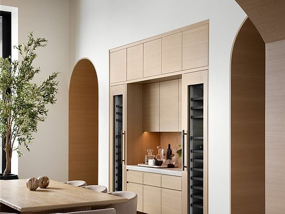 Step into an architectural masterpiece where every element of design invites you into a world of elegance and innovation. The journey begins at a double-height entry, framed by a grand custom oak archway, bringing to mind the tranquil water wall of the pool. Towering 16-foot privacy hedges guide your gaze inwards toward the expansive great room with kitchen and dining areas. Central to the home is a chef's kitchen featuring a Pitt cooktop and elite Gaggenau appliances that enhance the culinary experience, complemented by an island with fluted woodwork, masterfully placed Taj Mahal leather quartzite, and seamless custom oak cabinetry. A convenient automatic pass-through window connects to an outdoor eating area, beside a matching secondary full catering kitchen hidden behind custom-created fluted glass and steel archways. Here, in the heart of the home, additional majestic oak archways merge form and function seamlessly, centering the bar area and art walk behind.The contemporary design, envisioned by award-winning architect Eric Aust, enhances the neighborhood's charm with dramatic dormers, a lush full width living roof, expansive windows, and expert landscaping from Garden Studio. Within its striking exterior, the home features five ensuite bedrooms, five-and-a-half baths, plus an office and a separate loft, spanning 4,857 square feet of harmonious living space. The interior designed by Serendipte, blends luxury and comfort with white oak flooring, vaulted ceilings, and rich limestone and quartzite details, creating an upscale ambiance across two levels. The first-floor bedroom suite offers easy access to the office, which opens to a private front patio. Upstairs, additional bedrooms with private baths and a bonus room offer further living flexibility. The primary suite is a sanctuary with a massive walk-in closet, floating vanities, a freestanding tub, and an indulgent steam shower. Every detail speaks of handcrafted excellence, from wood-clad archways to mud in LED lighting and natural stone tiles by Ann Sacks and Walker Zanger. A three-car garage further provides function with two entry points one to the secondary kitchen and one to the mud room, with a laundry room located upstairs. Wrapped around this home is a lush backyard oasis with a custom pool, spa, 700 sqft California room, full outdoor kitchen, flush mount heat lamps, sound, fireplace and fire pit. This exclusive SkySail residence is destined to elevate your lifestyle for generations.