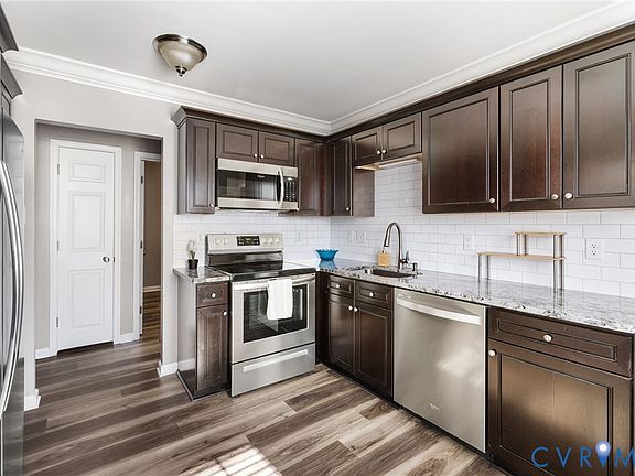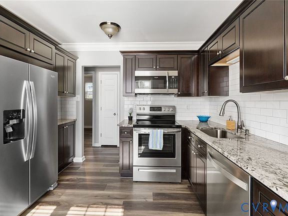 Welcome home to this beautifully updated 3-bedroom, 1-bath ranch on a spacious corner lot, offering convenient one-level living! Enjoy easy access to I-95, I-64, and Route 360. Inside, you’ll find tasteful updates throughout, including crown molding and laminate flooring. The kitchen has been thoughtfully updated with granite countertops, a tile backsplash, stainless steel appliances, and ample cabinetry with soft-close cabinets and drawers. Bright and inviting, the living room and bedrooms are filled with natural light and offer comfortable space for everyday living. The bathroom has been updated with a new vanity, tile floors and a tub/shower with tile surround. A generous mudroom/utility area with exterior access opens to a large private backyard. The home also features low-maintenance vinyl siding and a newer roof replaced in 2020. Experience the best of Richmond with museums, parks, shopping, dining, and riverfront attractions — including the Canal Walk — all just minutes away.