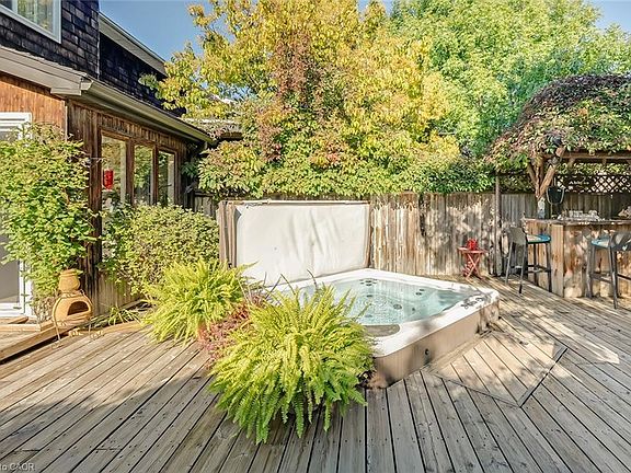 Welcome to this beautifully maintained 3-bedroom, 1.5-bath freehold townhome, perfectly situated within walking distance to Bronte Village and the Lake. Offering approximately 1,900 sq. ft. of above-grade living space, this home showcases pride of ownership throughout. The main level features elegant hardwood flooring, while the layout flows seamlessly into a bright and inviting living area. Enjoy a soundproof theatre room perfect for movie nights, and step outside to your private retreat featuring a hot tub and outdoor bar area — ideal for entertaining or relaxing in style. Additional highlights include a beautifully updated kitchen and bathroom, 200 amp electrical service, forced air gas heating, and a low-maintenance exterior. This is your chance to experience turnkey living in one of Oakville’s most desirable lakeside communities, just steps from shops, restaurants, and the waterfront.
