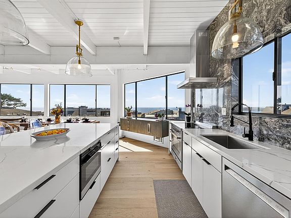 This custom contemporary home showcases the best of Bodega Bay! From the entry, ascend the floating staircase to the main level, featuring panoramic views of the Pacific. High-end upgrades include a smart-speaker system, custom restoration hardware fixtures, & an electric fireplace. The kitchen offers an oversized waterfall island, built-in stainless steel appliances, & beautiful marble work. A convenient half-bath completes the level. On the lower level are three bedrooms, each with sliders onto a private patio. The primary suite includes a walk-in closet & fully remodeled bathroom with soaking tub, large rain shower, and custom tile work. Also on this level are a full guest bathroom and 2-car garage with storage/laundry. The exterior offers multiple seating areas, a hammock with views of the 11th hole, and a Tesla EV charger. Pristine Bodega Harbour amenities are close by - including the clubhouse, restaurant, gym, sauna, heated pool, bocce/tennis/basketball courts, & more. Incredible beaches, tasting rooms, & seafood are minutes away. This home has lived as a full-time residence, weekend getaway, & profitable Airbnb. Thoughtfully upgraded with consideration to preserve coastal tranquility, this is a rare opportunity to slow down & enjoy the simple things, luxuriously!