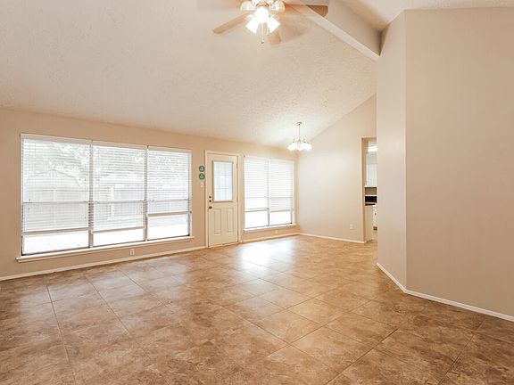 Park in your own two-car garage and host barbecues on your backyard patio when you move into this three-bedroom and two-bathroom rental home in Spring, Texas. Spanning 1,231 square feet on a single level, the home's layout includes an expansive open-plan