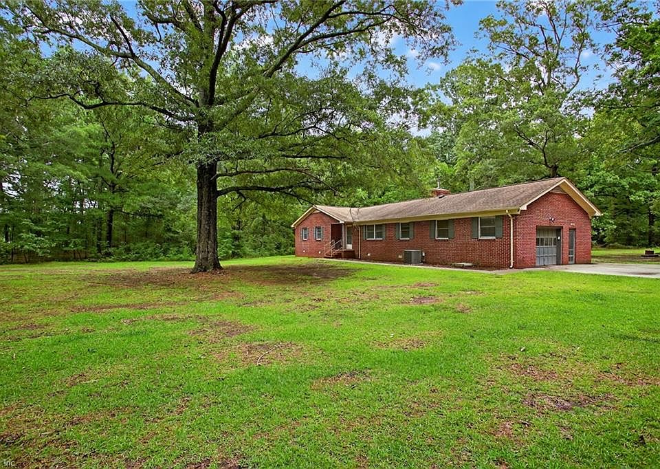 Looking for the perfect mix of privacy, space, and updates? This charming brick ranch on 3.3 acres in Carrollton has it all! With 3 bedrooms, 2 full baths, and 1,700+ sq ft, it features fresh paint, new luxury vinyl plank flooring, stylish lighting, granite countertops, and a cozy family room with fireplace. A brand-new HVAC system ensures year-round comfort plus a woodstove and back-up baseboard heat, while the enclosed porch is ideal for enjoying wooded views. Car enthusiasts and hobbyists will love the attached garage plus a new detached 16x20 garage. With well and septic to help lower monthly costs, this home blends country living with easy access to Smithfield, Newport News, and Suffolk. Don’t miss your chance—schedule your showing today!