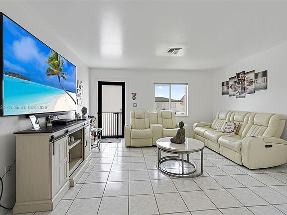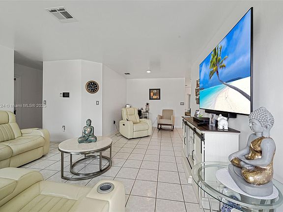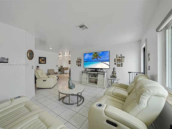 Located just minutes from the Turnpike and 216th Street, this beautiful property offers both comfort and convenience. It features a durable aluminum roof, elegant ceramic tile flooring, and a completely remodeled kitchen with wood cabinetry and stunning quartz countertops. Roof was installed in 2020 and A/C is just about one year old.