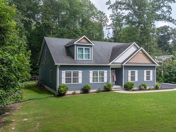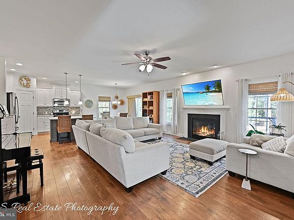 Meticulously maintained Bay to Beach residence in Milton, DE, that offers the significant advantage of no HOA fees. This impressive home spans 2,700 square feet and is set on a generous 1.83-acre lot, surrounded by lush trees that provide both a serene retreat and ample privacy. Upon entering, you'll be greeted by 9-foot ceilings and stunning luxury vinyl flooring that extends seamlessly throughout the entire home, complemented by an expansive foyer. The open-concept design of the living, dining, and kitchen areas creates an inviting atmosphere, highlighted by a custom mantel encasing a wood-burning fireplace. The kitchen is equipped with elegant solid surface countertops, a central island with a deep sink, a spacious pantry, and stainless steel appliances. The main level features a luxurious primary suite with a double sink vanity, a relaxing tub, a separate shower stall, and a large walk-in closet. Additionally, two more bedrooms and a full bathroom are located on this level, along with an oversized laundry room equipped with a utility sink for added convenience. Upstairs, you'll find two large and versatile flex space rooms and another full bathroom, all featuring the same high-quality luxury vinyl flooring. The backyard is an entertainer's paradise, complete with a concrete pad, fire pit, and ample space for outdoor games and activities. This exceptional property also includes a two-car 24x24 pole building, a blacktop driveway, a conditioned crawl space, and many other features that enhance its appeal.