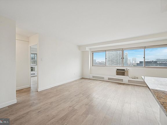 Welcome to River West Condominiums, perfectly situated in the prestigious Rittenhouse Square neighborhood. Perched on the 18th floor, this corner unit offers sweeping, unobstructed views of Center City that you can enjoy from multiple rooms. Step inside to an airy, open-concept layout that seamlessly connects the living area to the modern kitchen. The kitchen features stainless steel appliances, granite countertops, ample white cabinetry, and an expanded breakfast bar. The unit is upgraded with luxury vinyl plank flooring throughout. This home includes two generously sized bedrooms, each with large windows that capture beautiful city views and equipped with built-in closets. The full bathroom offers a tub/shower combo and vanity. The location is unbeatable! Just steps from Rittenhouse Square Park, world-class dining, cafés, and shopping. Commuting is a breeze with close proximity to Suburban Station, multiple bus routes, the Market-Frankford Line, and easy access to major highways. Don’t miss your opportunity to live in one of Philadelphia’s most desirable neighborhoods. Schedule your showing today!