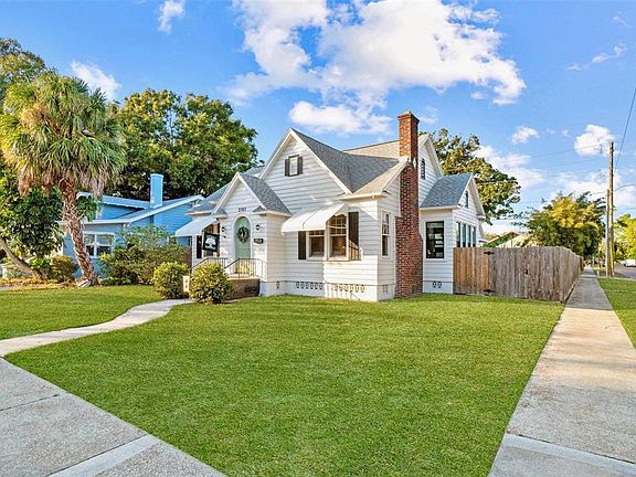 Welcome to 2101 Burlington Avenue North, a lovingly restored 1938 bungalow in the heart of Historic Kenwood. Completely renovated and reimagined in 2020, this home blends timeless architectural charm with modern comfort. As only the second owners, the sellers revitalized this classic residence with thoughtful updates that honor its history while elevating its livability. Set on a desirable corner lot with alley access, this 3-bedroom, 2-bath home is just over 1600SF, and also includes a versatile office/den, perfect for working from home or creating a cozy retreat. During the renovation, the owners added a true primary suite—a rare luxury in Historic Kenwood—featuring a spacious walk-in closet, dual vanities, a stand-up shower, and a relaxing soaking tub. Inside, warm natural light, restored character details, wood-burning fireplace, and a seamless layout create an inviting flow throughout. The renovated kitchen opens directly to a charming side patio, ideal for morning coffee, al fresco dining, or entertaining friends year-round. A 2-car garage with alley access adds exceptional convenience and storage—another standout feature for the neighborhood. And the location is unbeatable: just five blocks from bustling Central Avenue, where you can stroll to coffee shops, acclaimed restaurants, local boutiques, breweries, galleries, and even catch a Rays game. Full of personality, craftsmanship, and thoughtful upgrades, this home is a beautifully reimagined piece of Kenwood history—ready for its next chapter.