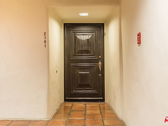 Welcome to Century Woods, an exclusive resort like community designed by Cliff May. This large 2 bed, 2.5 bath condo in Bldg 1 faces lush landscaping & water feature. Enter foyer & step into a large living rm w/ soaring ceilings, hardwd flrs, fireplace, wet bar, formal dining area and an extensive outdoor patio w/ serene views of the grounds. Cook's kitchen is spacious w/ center island, double oven, lots of counters & cabinets. Generous sized master suite features a seating area w/ fp, walk-in closet and has access to 2nd private walk out patio. Bedrm #2 w/ en-suite bath also opens to patio. The in-unit laundry room has w/d, utility sink and many cabinets. Two side-by-side parking and private storage unit in garage. Community amenities include 24-hour gated security, fitness center, 2 pools and spas (indoor & outdoor), tennis court and club house complete w/ catering kitchen. Just blocks from shopping, theaters & restaurants. Escape the city and enjoy this oasis!