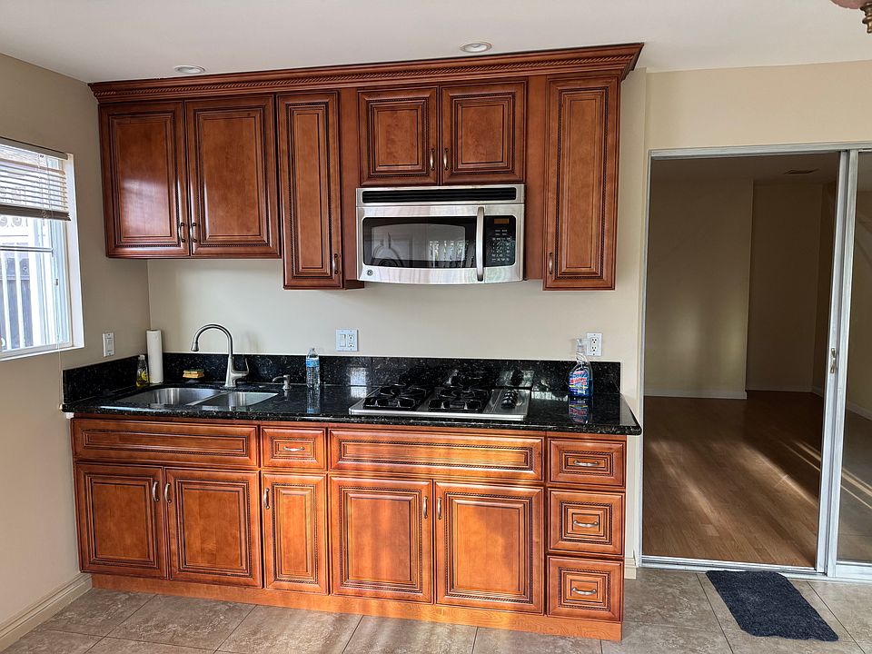 Back room with its own living room, bathroom and kitchen. Completely separate from main house. Gas, electricity, and water bill is included in the rent.
