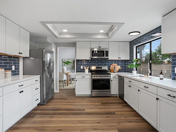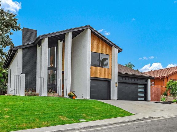 Remodeled 2,400 square foot home offers a perfect blend of modern luxury and comfortable living. Nestled in the peaceful cul-de-sac community of Henie Hills. Recently renovated from top to bottom; upon entering you notice the high ceilings that floods the home with natural light, making the fresh paint and brand new LVP flooring really shine. Large living spaces including a living room with updated fireplace, dining room with a large window overlooking the pool, family room and breakfast area. A gourmet kitchen with brand new cabinets, backsplash, modern appliances, and sleek countertops make family meals a breeze. One bedroom down and three large bedrooms upstairs, three fully remodeled bathrooms with updated fixtures and finishes. The brand new HVAC system ensures optimal comfort, while the resurfaced pool provides refreshing outdoor enjoyment. The home also features a large 3-car garage with new garage doors, providing ample parking and storage space. The newly landscaped exterior adds to the curb appeal and creates a welcoming outdoor space. Enjoy the spaciousness of this quiet corner lot home in the exclusive Henie Hills community, offering a peaceful and family-friendly atmosphere and is just a short drive from shops, freeways, and the stunning beaches of Oceanside.