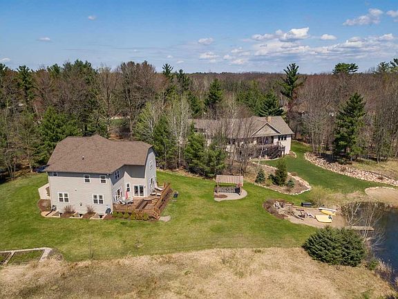 PARADISE IN YOUR OWN BACK YARD! This 5 Bedroom, 3.5 Bath Custom Built Craftsman's Built Home Boasts OVER 4,000 sq ft of Living & Entertaining Space with a 1.25 Acre Lot on Eagle Point Lake! Amenities include A Custom Designed Gourmet Kitchen that provides Granite Counter Tops, Counter Height Center Island with Wine Bar & Walk-in Pantry. Executive line Stainless Steel Appliances with GE Air-vent gas range top and Jen-Air convection.Main Level of the home also offers a bright and sunny Living Room, Formal Dining Room with Hardwood Flooring running through Entry, Dining & Kitchen Area. Main Level Mudroom Entry with Separate Laundry Room and Private Office Space! The Spacious Master Suite is located on the Second Story of the home and boasts a Tray Ceiling, and slate tiled Master Bath with Jetted Soaking Tub, Separate Shower & ample Walk-in Closet Space! The Upper Level also Offers 3 Well-Sized Bedrooms with vaulted ceiling, Full Bath & fully finished BONUS ROOM! All this Plus the Lower Level Provides and Additional Guest Bedrooms, Full Bath & Family/ Rec Rooms with excellent storage. The truly incredible back yard gives the feeling of an exclusive resort with a custom paver block patio with Firepit, 2 tiered Deck and professional landscaping leading to your own private dock on the lake!ALL within walking distance to the Green Circle Trail and all Stevens Point Amenities.... START LIVING THE GOOD LIFE!