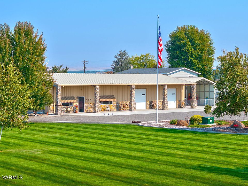 Superb Barndominium with large, gated lot, RV parking, high-end construction techniques, a 1600 sq/ft, heated and insulated shop, large, covered patio, 22kw Generac generator with propane tank, and endless views of the lower Yakima Valley and surrounding hills. Built by the owner, a professional contractor, with extra-wide walls, insulation, and a loft that includes an office, this is a dream come true. Suitable for events with expansive lawn and parking, and perfect for the professional or do-it-yourselfer, and fitted out with security cameras, a shed, and more. See Documents for additional information.