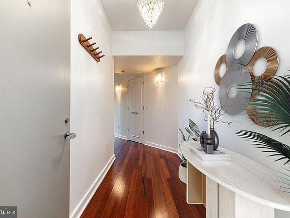 Looking for luxury, location, and lifestyle? The Murano delivers it all. Welcome to The Murano, Philadelphia’s premier luxury high-rise in the heart of Center City. This stunning 2-bedroom, 2-bath residence offers sophisticated city living with a private balcony, reserved parking spot, storage unit, and world-class amenities. A welcoming entry hall with ample closet space leads into an expansive open-concept living, dining, and kitchen area, highlighted by floor-to-ceiling windows that flood the space with natural light. The chef’s kitchen features an island with seating, stainless steel appliances, and sleek finishes, while the spacious living area opens to a private balcony—perfect for enjoying skyline views. The split-bedroom layout offers privacy, with the primary suite featuring a hallway entry, electric shades, custom-outfitted closet, and in-unit washer/dryer. The spa-like en suite bath boasts a double vanity, walk-in shower, and soaking tub. The second bedroom features built-ins and a Murphy bed, ideal for guests or a home office, and is serviced by a full hallway bath. Residents enjoy 24/7 concierge, indoor pool, state-of-the-art fitness center, community lounge, and rooftop deck with lounge chairs and dining areas. Just steps from Rittenhouse Square, Logan Square, Trader Joe's, Giant Supermarket, Schuylkill River Trail, the finest dining, shopping, and museums—this is city living at its best. Schedule your private showing today!