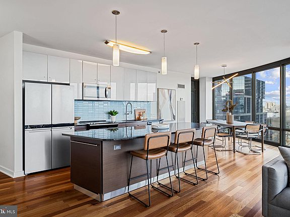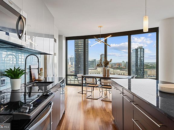 Welcome to Unit 1902 at the Murano — a luxurious, light-filled one-bedroom residence perched high above the city on the 19th floor of one of Philadelphia’s premier condominium buildings. With breathtaking unobstructed north-facing views, this stunning home combines modern design, top-tier amenities, and an unmatched location in the heart of Center City. Step into a spacious open-concept living area featuring floor-to-ceiling windows that bathe the space in natural light. The sleek kitchen is outfitted with granite countertops, stainless steel appliances, and a breakfast bar — perfect for entertaining. The oversized bedroom easily fits a king-size bed and offers generous closet space. A modern full bath, in-unit washer/dryer, and hardwood floors throughout complete this move-in-ready home. Enjoy your private balcony, ideal for relaxing and taking in panoramic skyline views — an incredible place to start or end your day. The Murano is a full-service building offering residents 24-hour concierge, a state-of-the-art fitness center, a heated indoor lap pool, a sun terrace, a community room, and valet parking. Just steps from Rittenhouse Square, 30th Street Station, the Schuylkill River Trail, Trader Joe’s, and countless restaurants, you’re connected to everything the city has to offer. Monthly condo fees include water, building amenities, and one deeded parking space in the attached covered garage. *Photos are of a similar unit with the same layout. Subject unit is located on a higher floor with superior views.