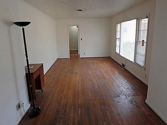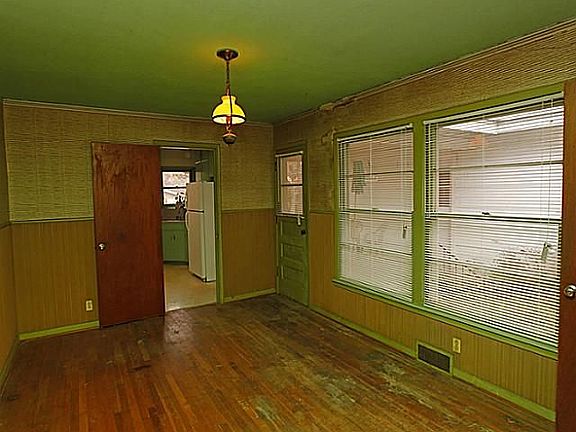 Wood flooring throughout most of the home except kitchen and baths. Bedrooms adequately sized. It does need some texturing and paint and some updating.It is priced accordingly with that in mind. Nicely shaded lot, storage space galore in garage. Covered breezeway between 2 car detached side entry garage and home. Ample room in the backyard for additional storage and parking. Buyers can move in upon closing and funding.